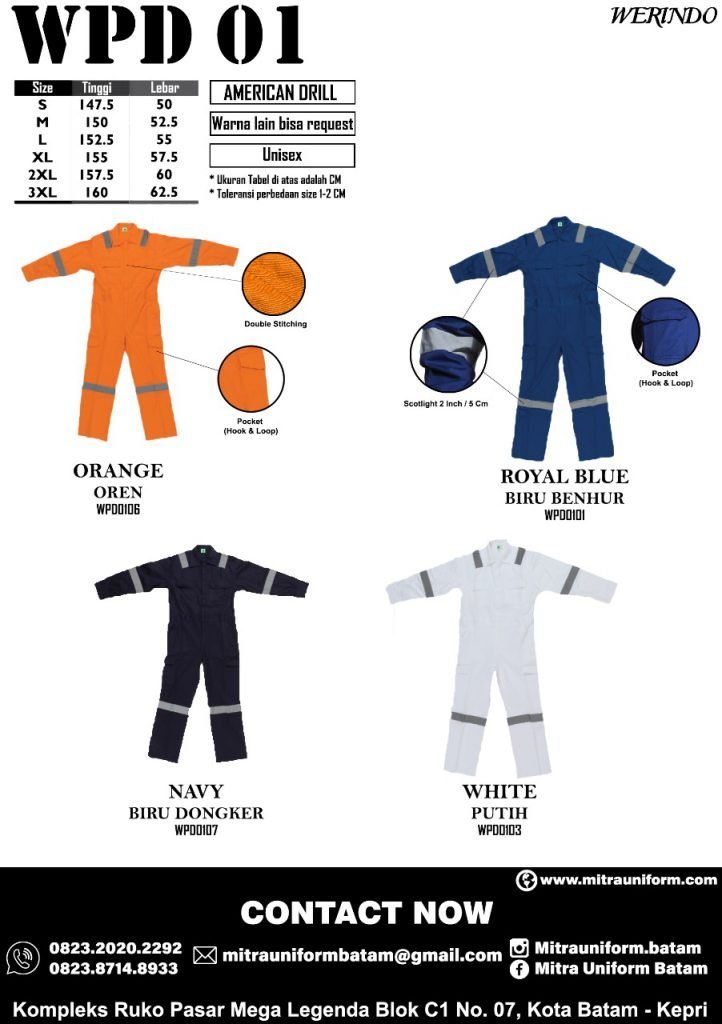 Untuk informasi lebih lanjut tentang Grosir Coverall Batam, Silahkan Call/ Whatsup kami (+62)852 1118 2221 / (+62)852 6366 8892, Thanks